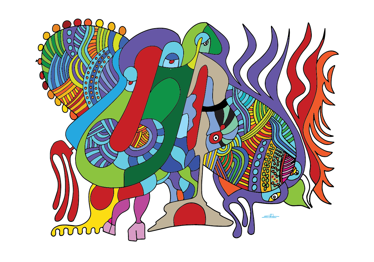 Each piece explores movement, emotion, and character through layered shapes and fluid interactions, creating images that feel both dynamic and cohesive.
