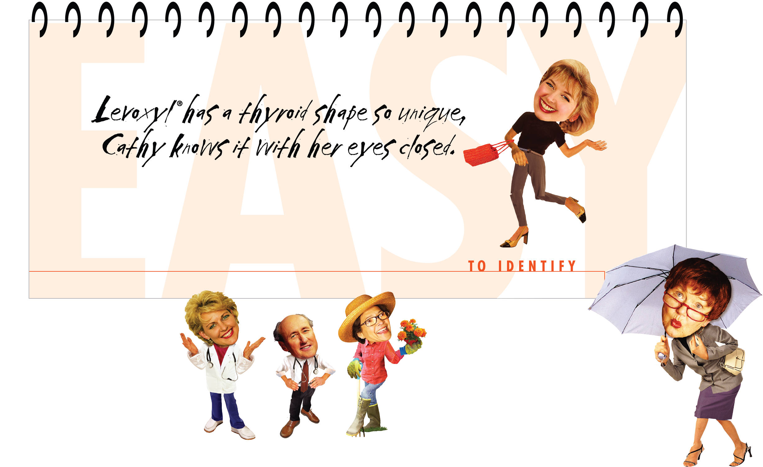 Levoxy® gave me the chance to bring a lighter, more whimsical tone to pharmaceutical design. Built around the product’s distinctive pill shape, the sales aid uses playful character illustrations, expressive typography, and a spiral-bound format to make the message feel memorable and engaging. While the piece has humor and personality, it still stays clear, structured, and appropriate for a healthcare audience.