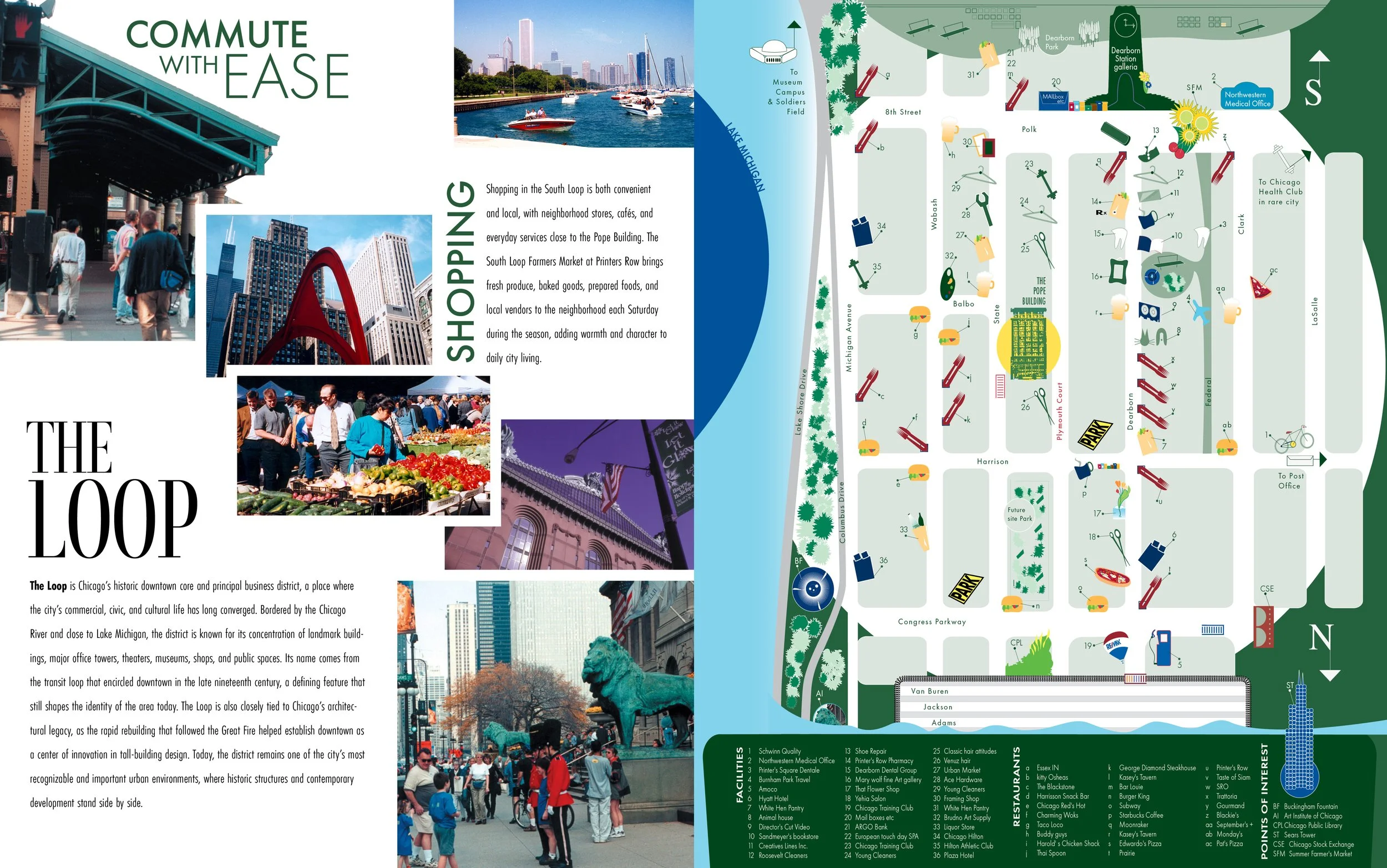 A custom illustrated map was developed as part of the brochure to highlight local amenities and reinforce the sense of place. Together, these elements create a cohesive narrative that presents not only a property, but a complete living experience in the heart of Chicago’s Printer’s Row.
