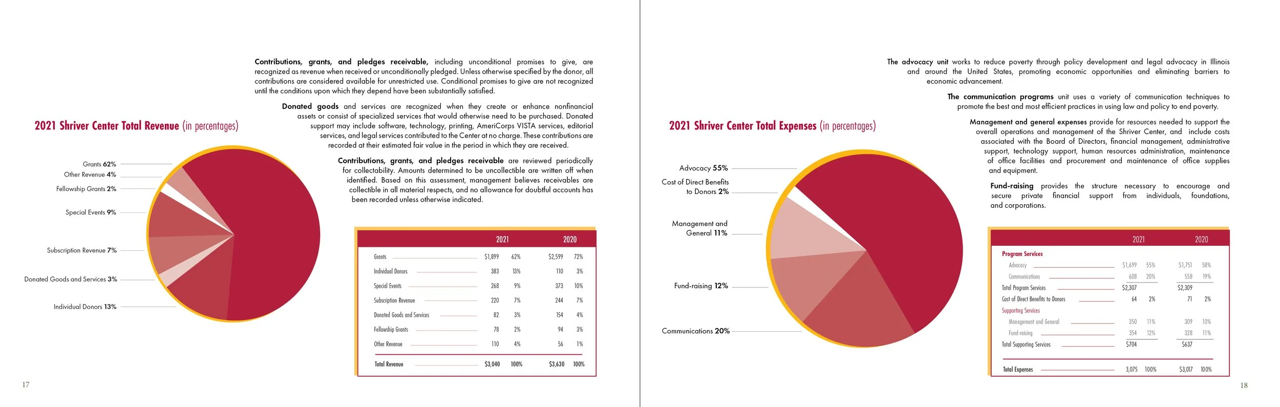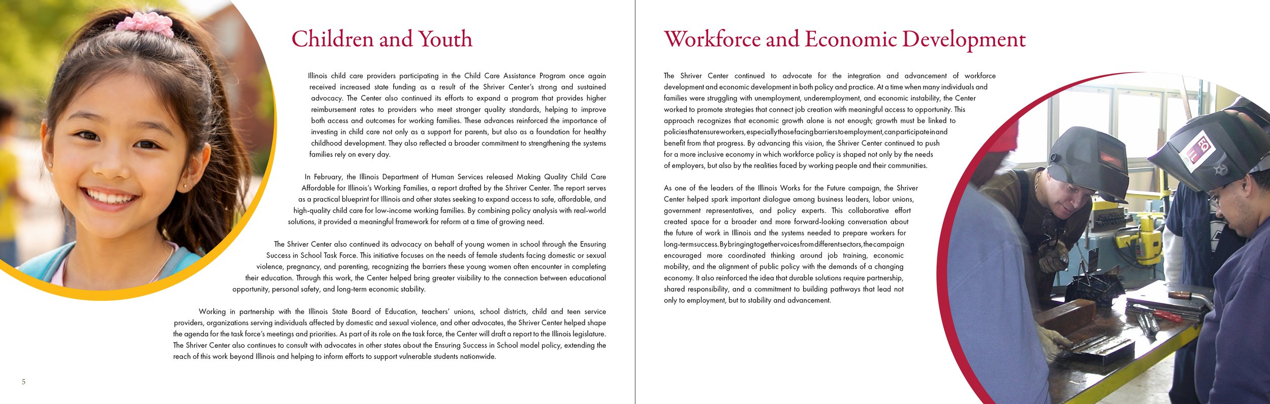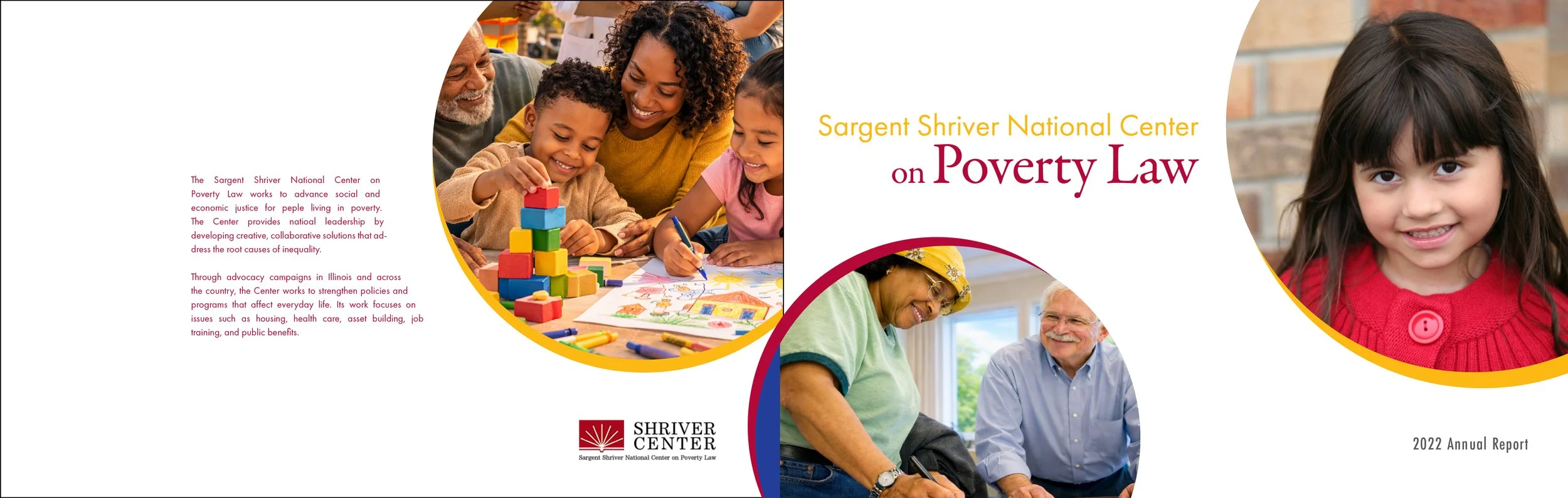 The Sargent Shriver National Center on Poverty Law is a nonprofit organization dedicated to advancing social and economic justice for people living in poverty. Through advocacy, policy development, and community partnerships, the Center works to address systemic inequality and expand access to opportunity across areas such as housing, healthcare, education, and workforce development. This annual report brings together financial data, program updates, and community-focused initiatives, combining editorial content, imagery, and infographics to present a comprehensive view of the organization’s work and impact.